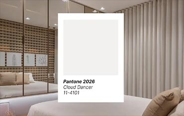 A Cor Pantone 2026, Cloud Dancer (11-4101), é um tom claro, suave e extremamente versátil. Ela transmite sensação de conforto, leveza e equilíbrio, sem pesar visualmente nos ambientes. Por isso, funciona tão bem em projetos residenciais e é uma excelente escolha para quem busca um lar mais acolhedor e atual.